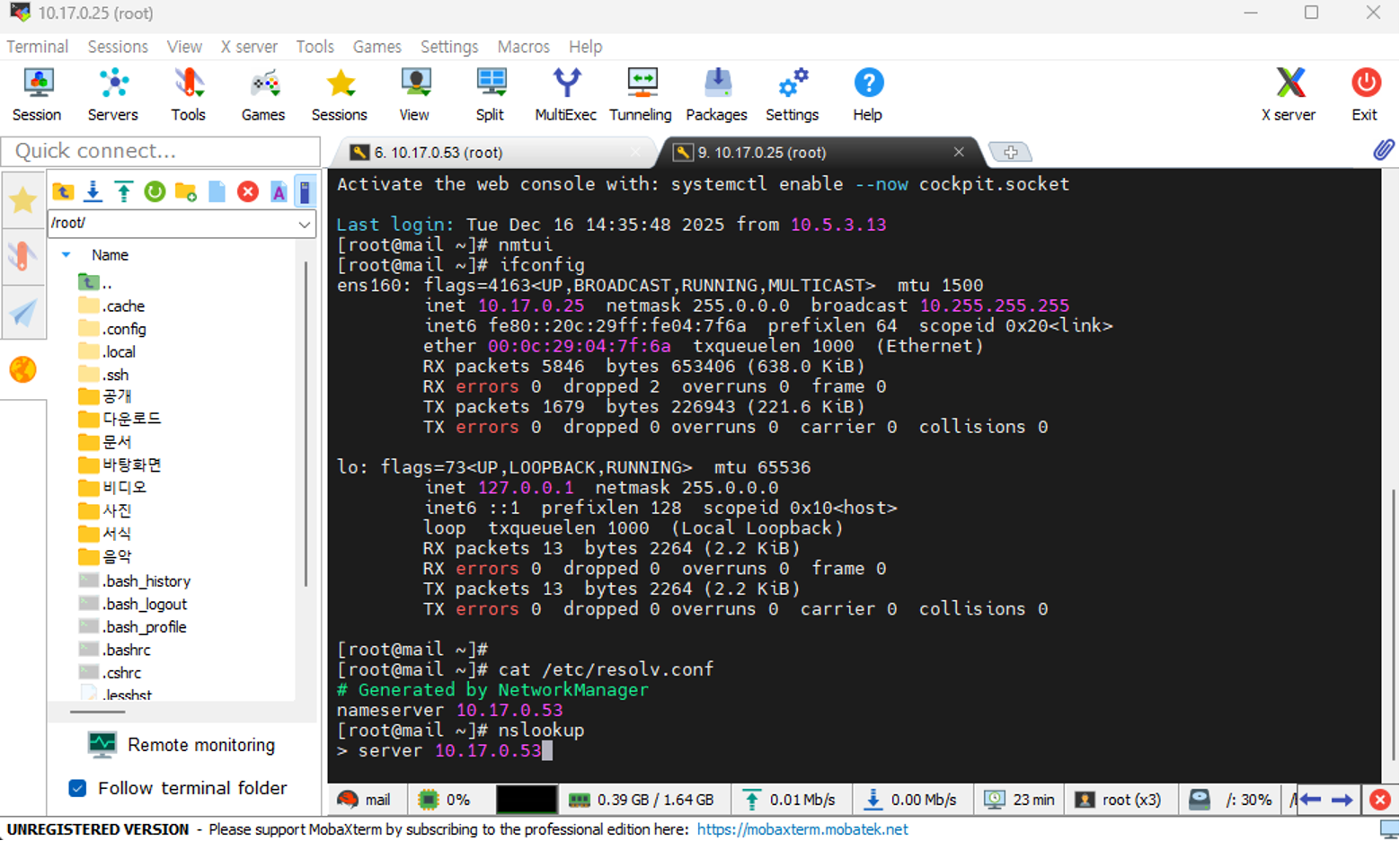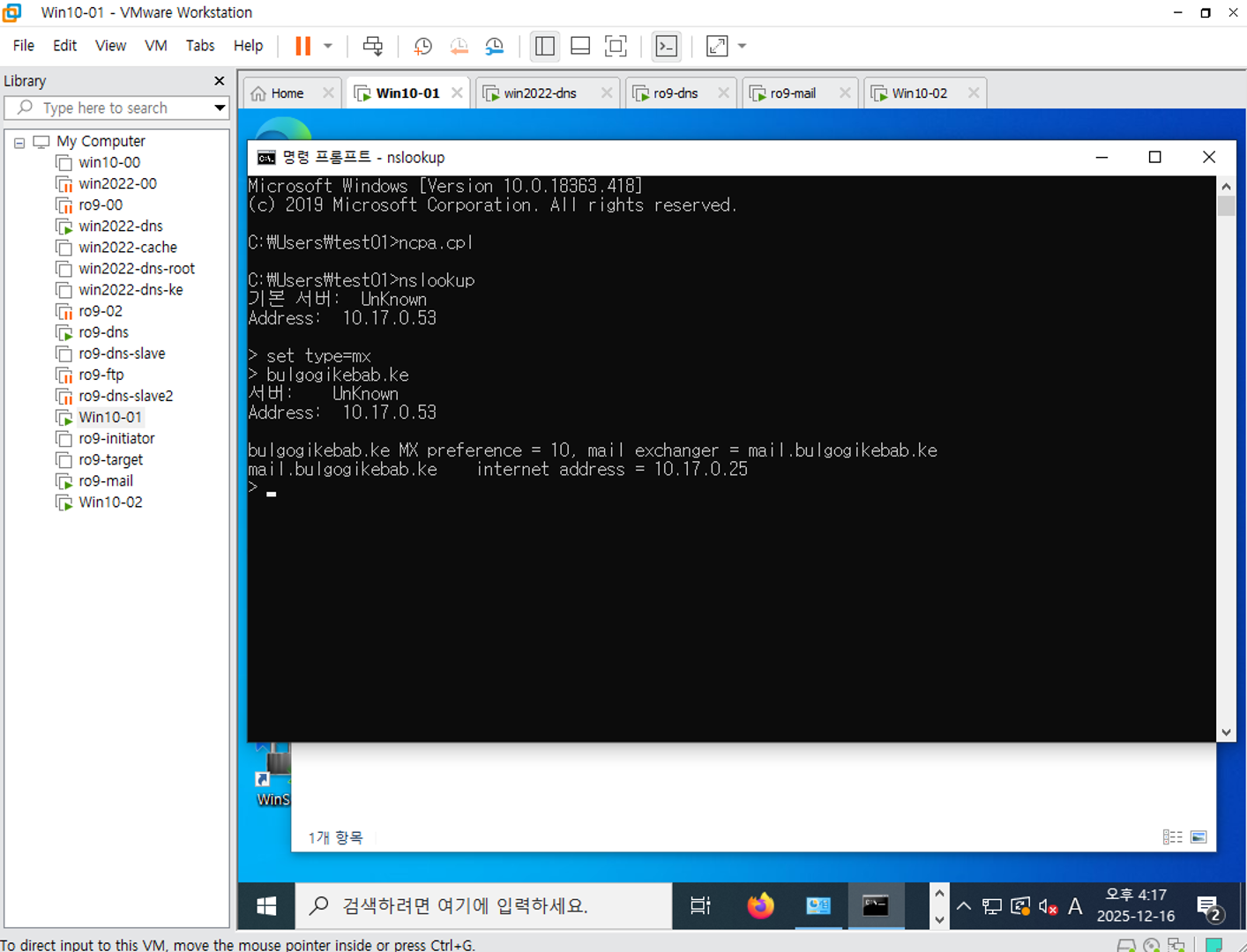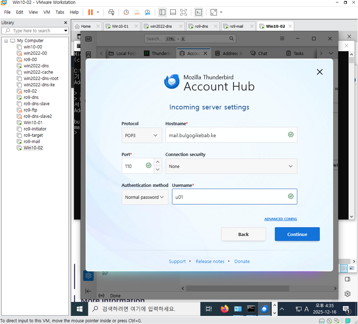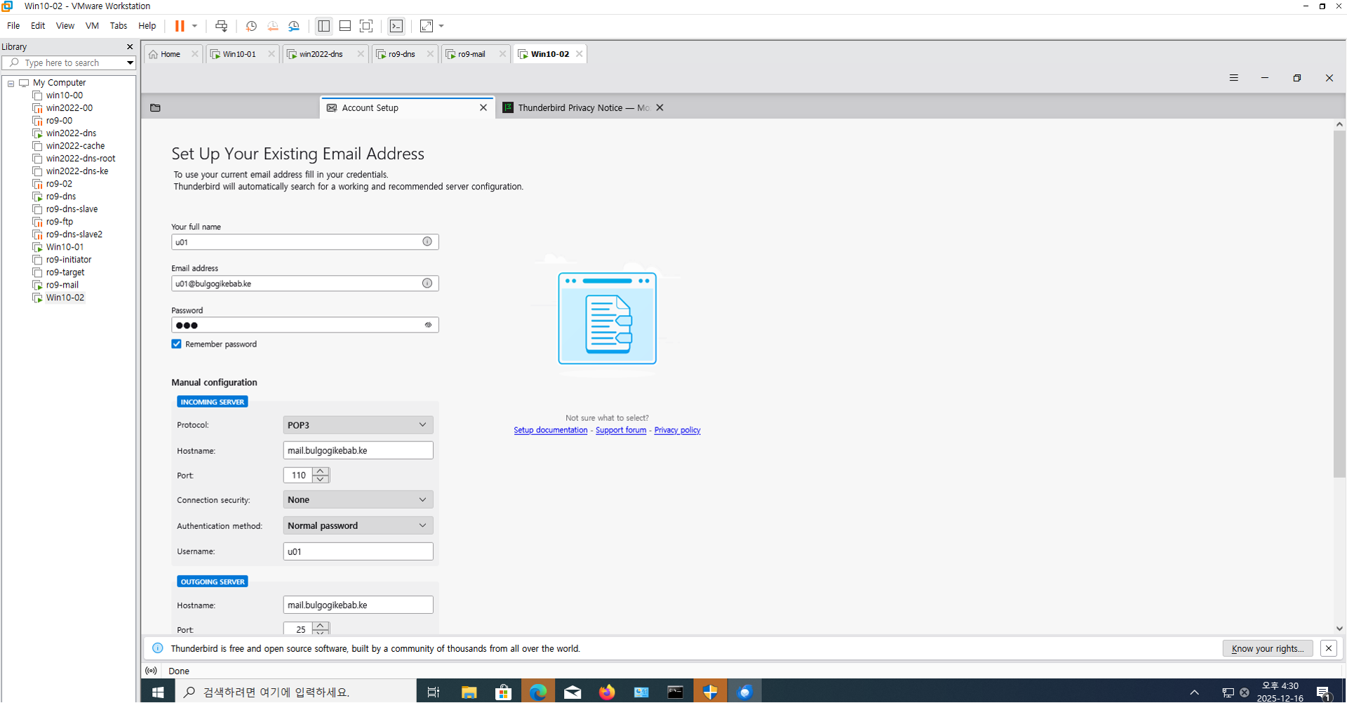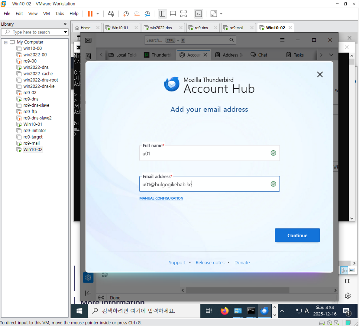 그럼 Vmware mails 쪽에서 네트워크 연결 한번 확인해준다.