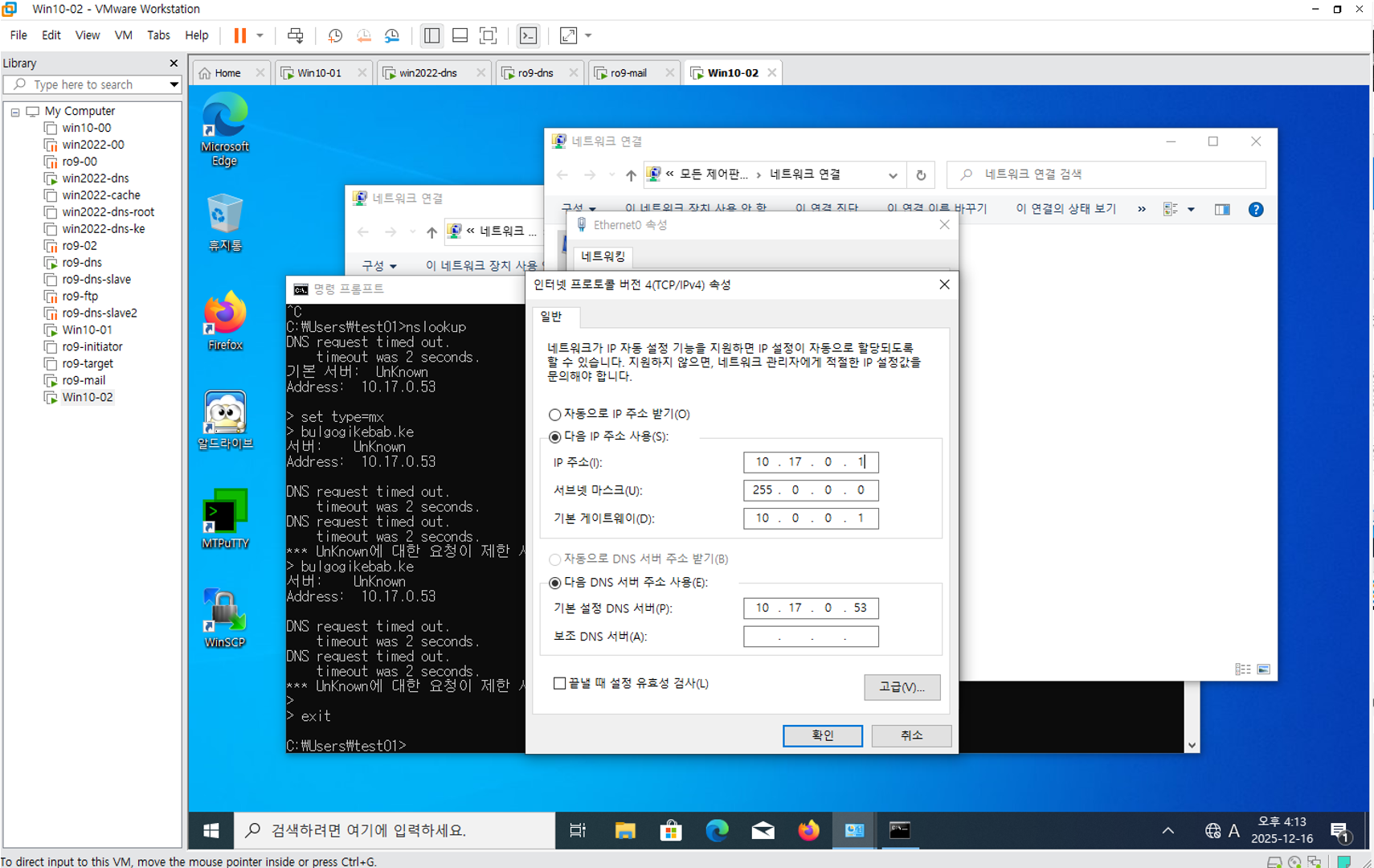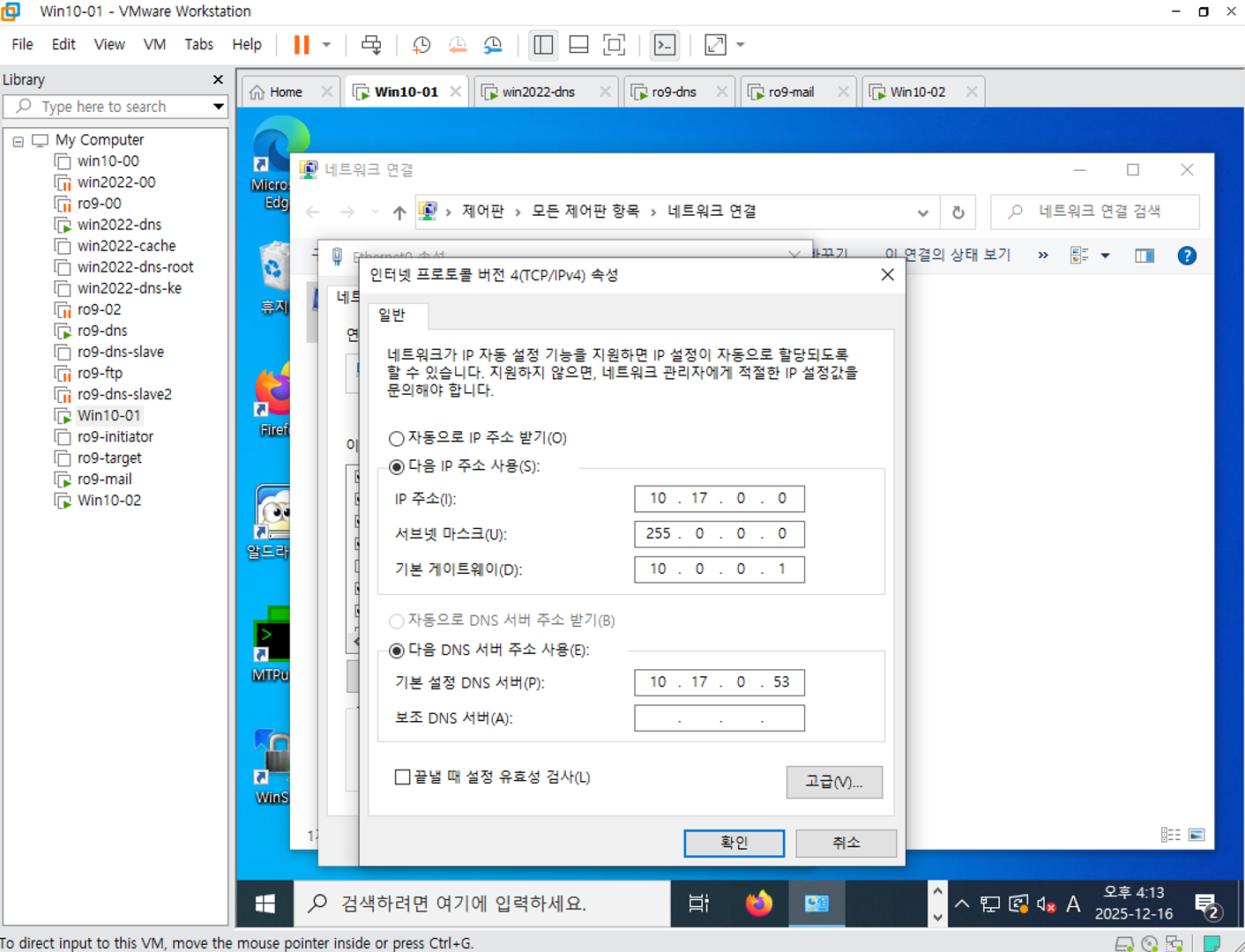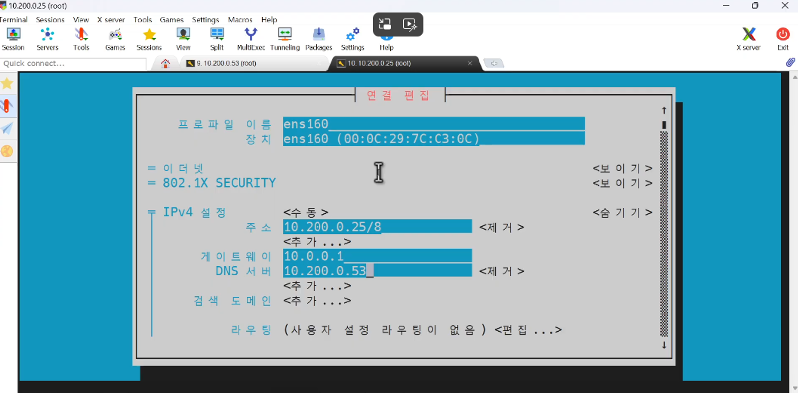 조건 Vmnet 0번으로 전부 통일