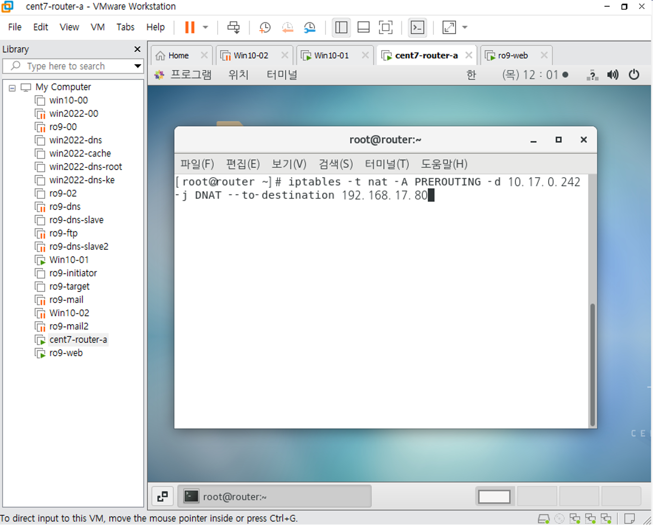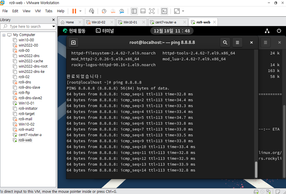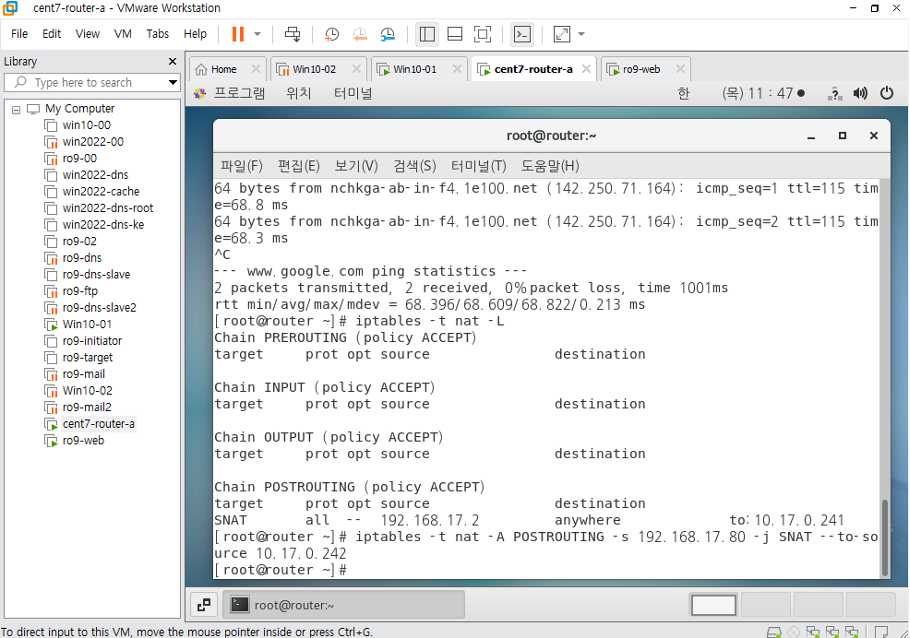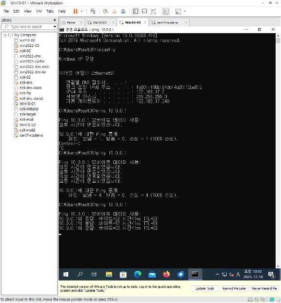 연결이 올바르게 되었으면Win클라이언트에서 ping이 간다.