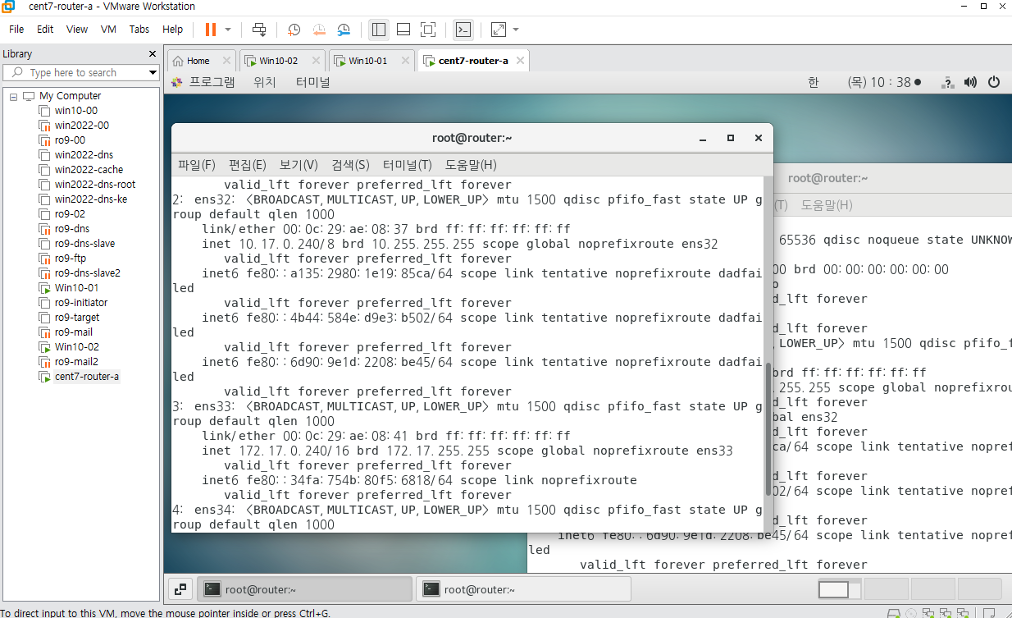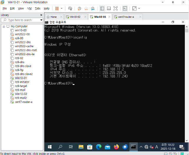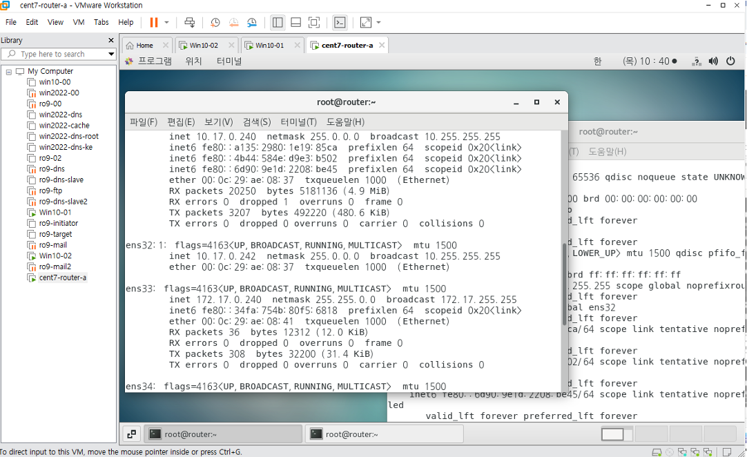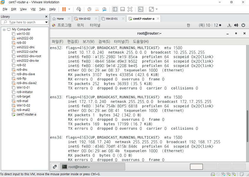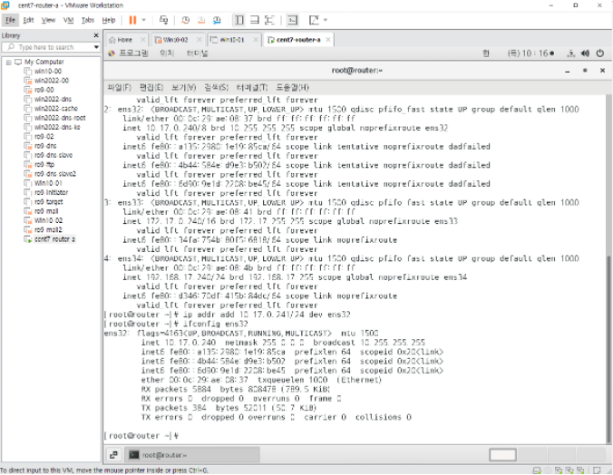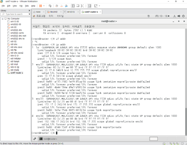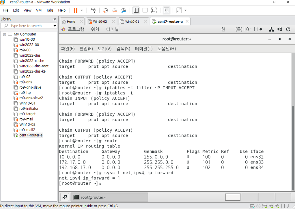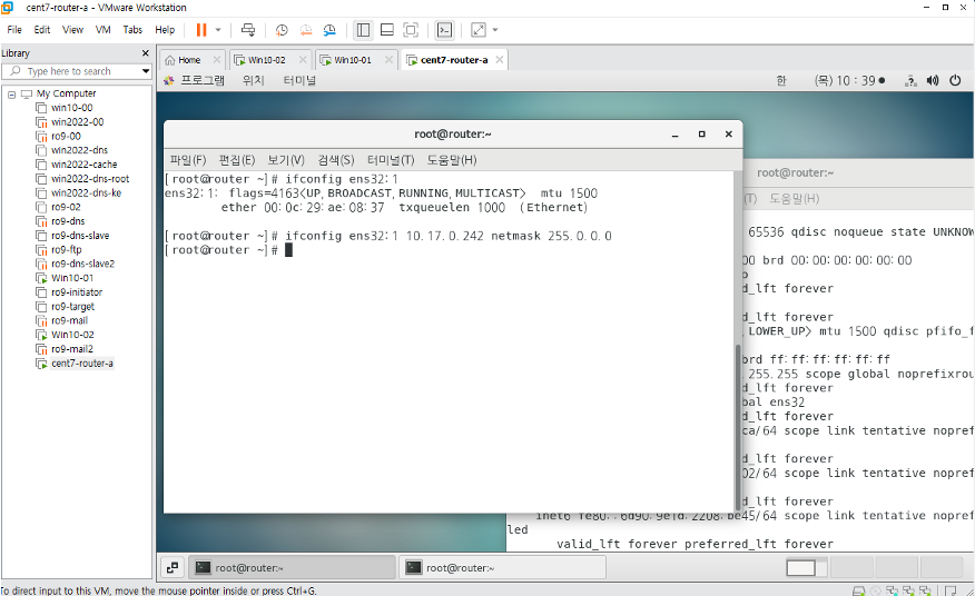 윈도우 10 클라이언트에서 ip확인하고,