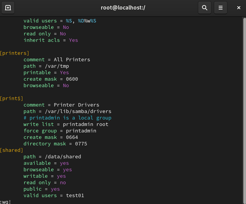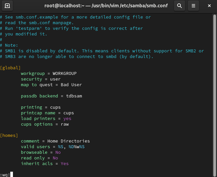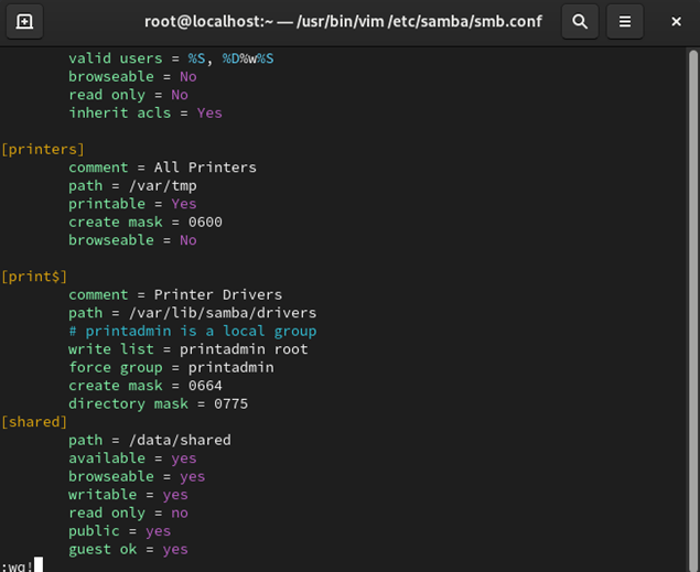 vi /etc/samba/smb.conf