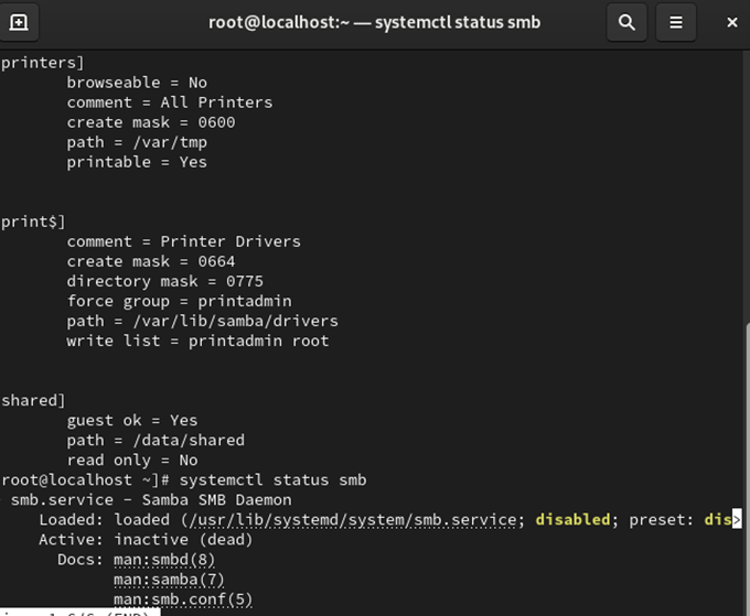 systemctl status smb