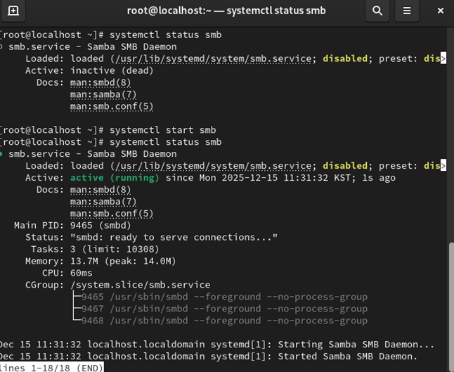 systemctl start smb