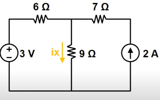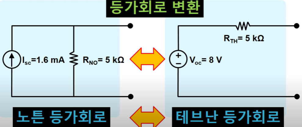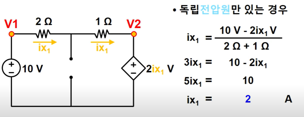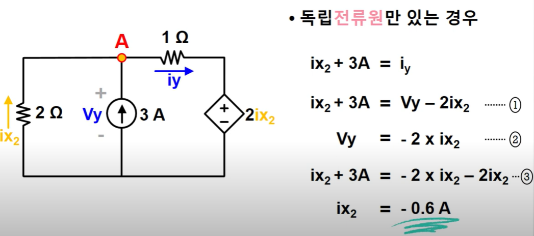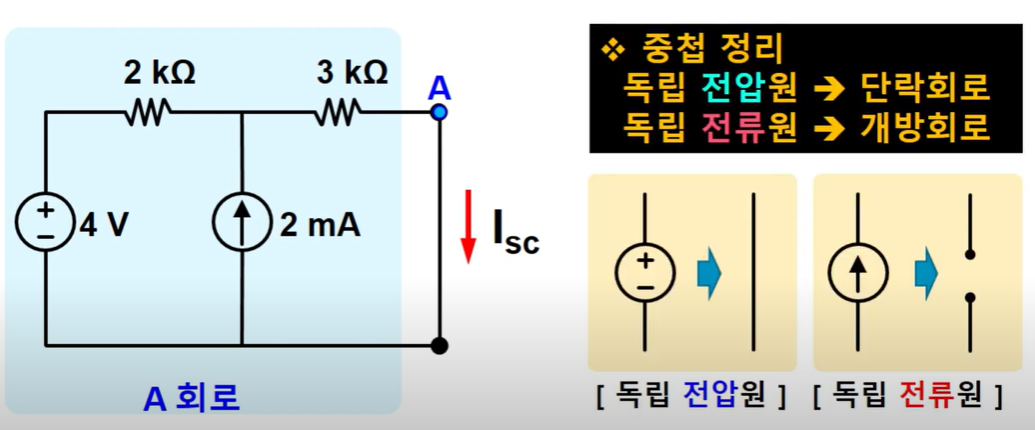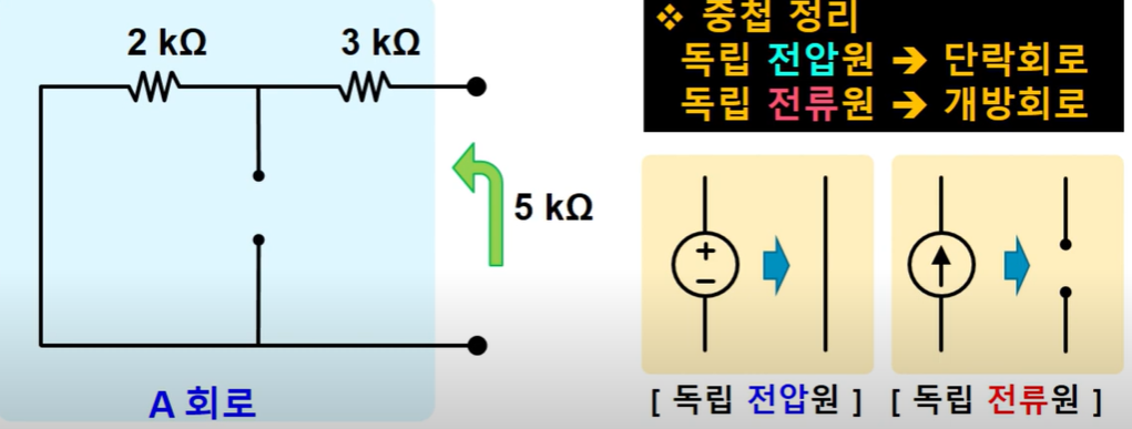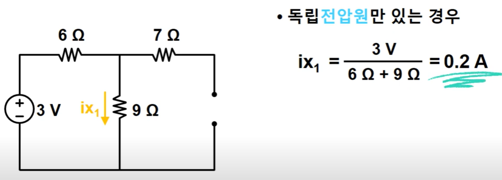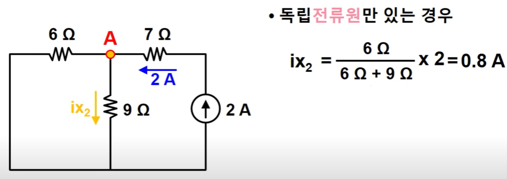 전압원, 전류원 같이 있는 경우 중첩의 정리 사용해 각각 더함
