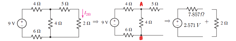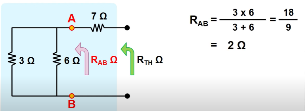 Rth = 5Ω + 4 X 10 / 14 Ω = 7.857 Ω