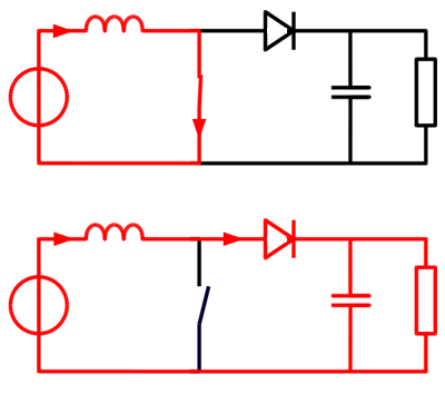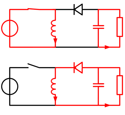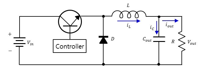 회로 구성 : 인덕터 1개, 다이오드 1개, 스위칭 부분으로 구성