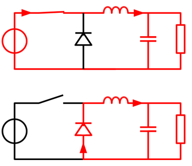 또한 출력 커패시터에 충전되어 있는 전류는 다이오드에 의해 역방향으로 흐르지 않음.