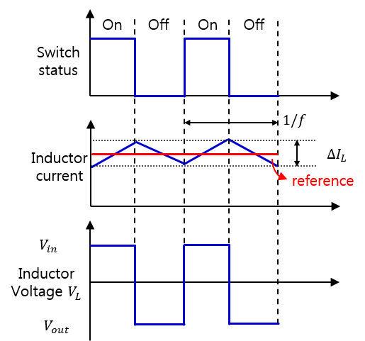 입력 전압이 인덕터를 통해 부하로 전달