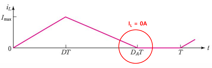 (1-D)T 구간 중 DAT 이후부터 스위치가 On 되는 시점까지 인덕터 전류가 0이 되면, 다이오드는 Off 상태를 유지