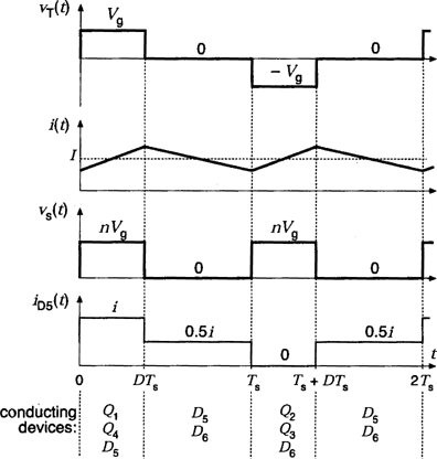 트랜스포머 양단 = +Vdc / 2 (Q1 통해 상단 전원 연결)