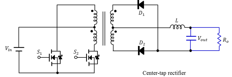 푸쉬풀 컨버터는 트랜스포머의 중심탭(center tap)을 기준으로