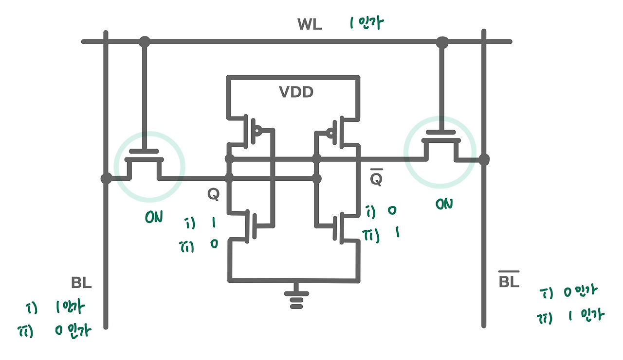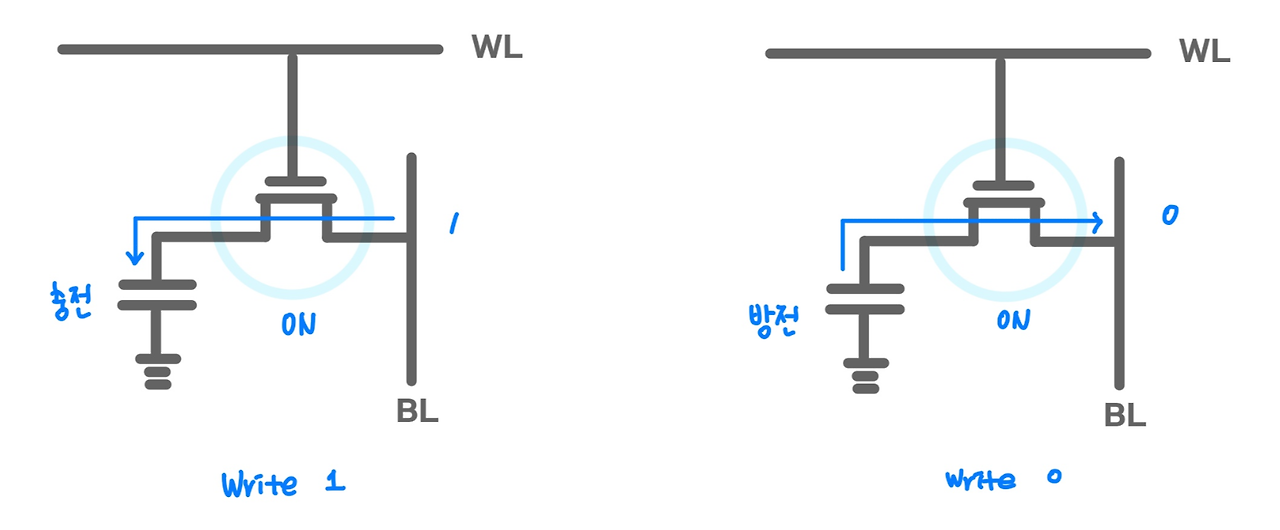 " WL = 1(High) 인 상태에서 쓸 데이터를 BL에 주면 데이터가 써짐 "