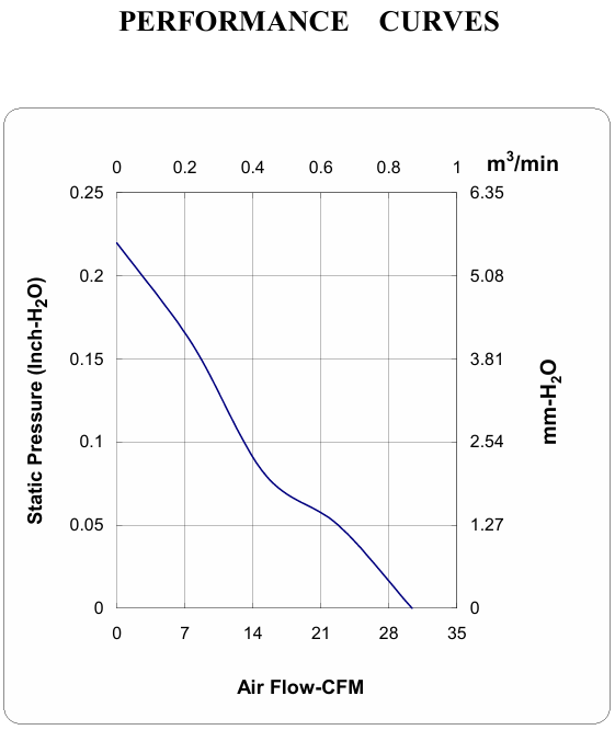 x축: 풍량(CFM), y축: 정압(mmH₂O)
