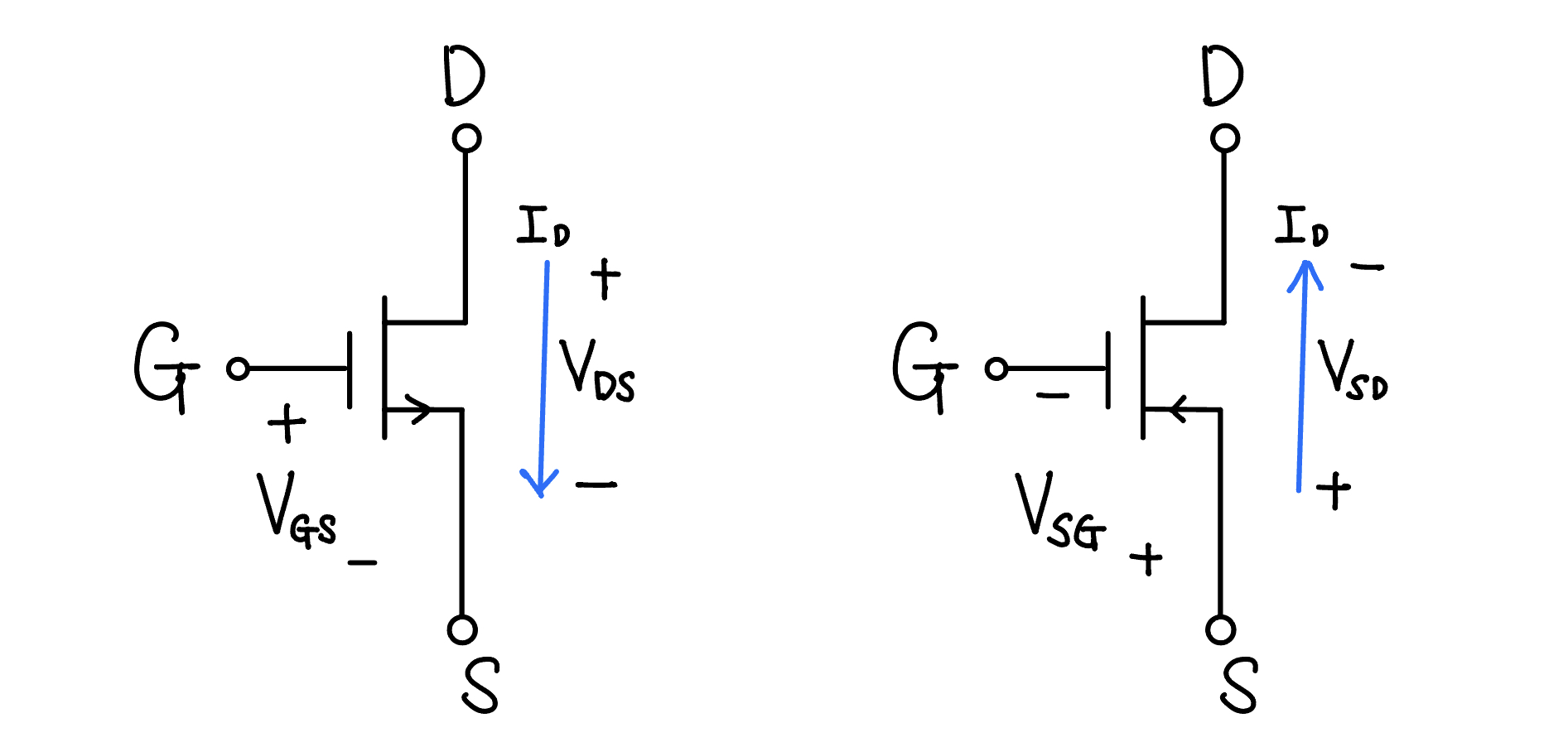 하지만 전자 흐름은 Drain → Source 방향으로 이해됨