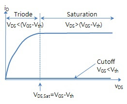 선형 (비포화 영역, Triode) (Vgs-Vth > Vds)