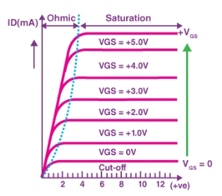 핀치오프 현상 발생하여 드레인 전압이 커져도 드레인 전류 일정함.