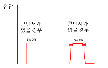 콘덴서가 없을 경우 아래와 같이 노이즈가 발생