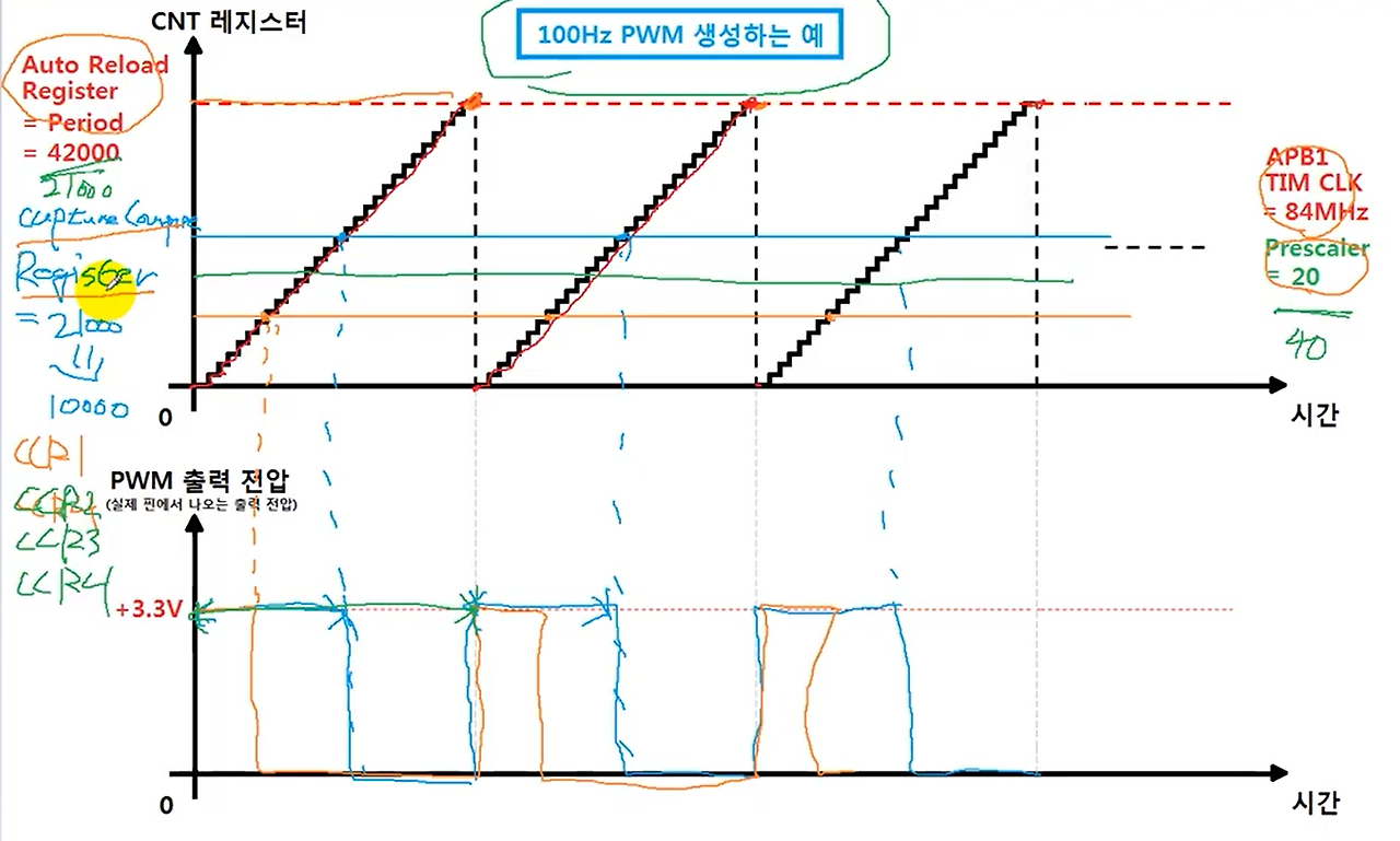 CCR(Capture Compare Register)을 통해 Duty를 조절함.