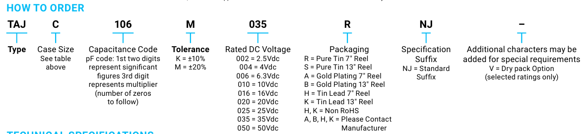 C (Metric 6032) 10µF K(±10%) 25Vdc