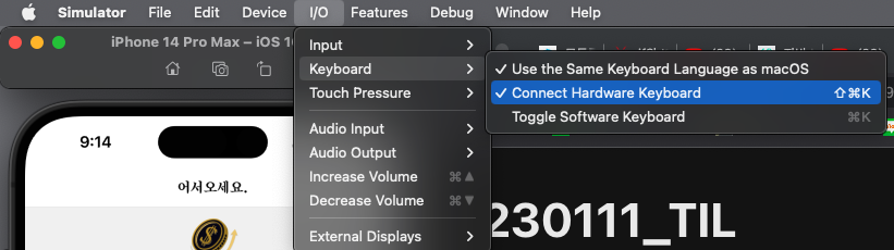 I/O ➡ Keyboard ➡ Connect Hardware Keyboard