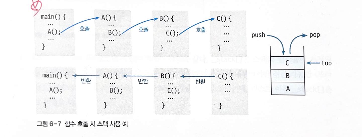 ex) 스택의 맨 위에는 현재 수행 중인 함수의 정보가 저장되고, 이 함수를 호출한 함수는 바로 아랫 공간에 저장되어있다. 그래서 수행을 마친 함수가 스택 영역에서 지워지면 호출한 함수의 정보가 스택의 맨 위에 있게 된다. -> 프로그램이 수행되는 경로를 효율적으로 따라갈 수o