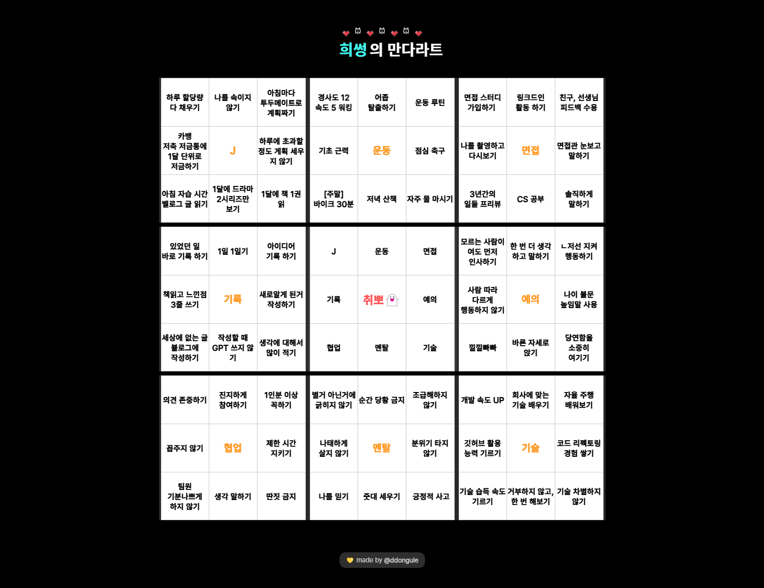 그리고 가장 중요한 취뽀도 아래 만다라트처럼 갓생 살아 가고 싶은 회사에 꼭 입사해보겠습니다.