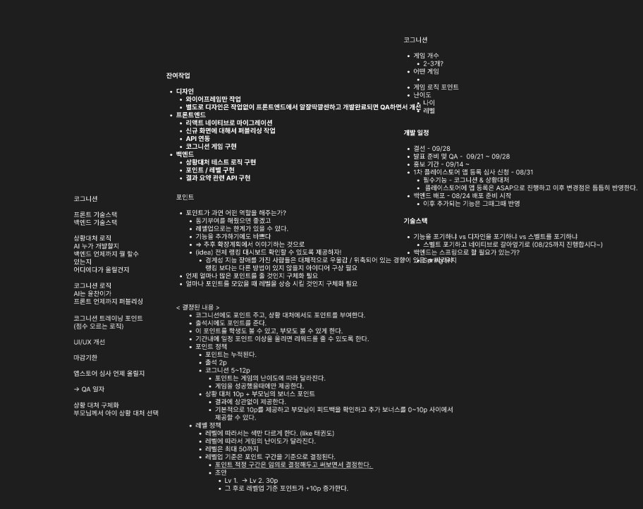 멘토님께서 들었을 때 똑같은 말을 여러 번 하고 있고, 지금 시점에서는 개발에만 집중하고 있어야 하는 시기인데 기획을 계속 바꾸는 건 문제점이라고 말씀하셨다.