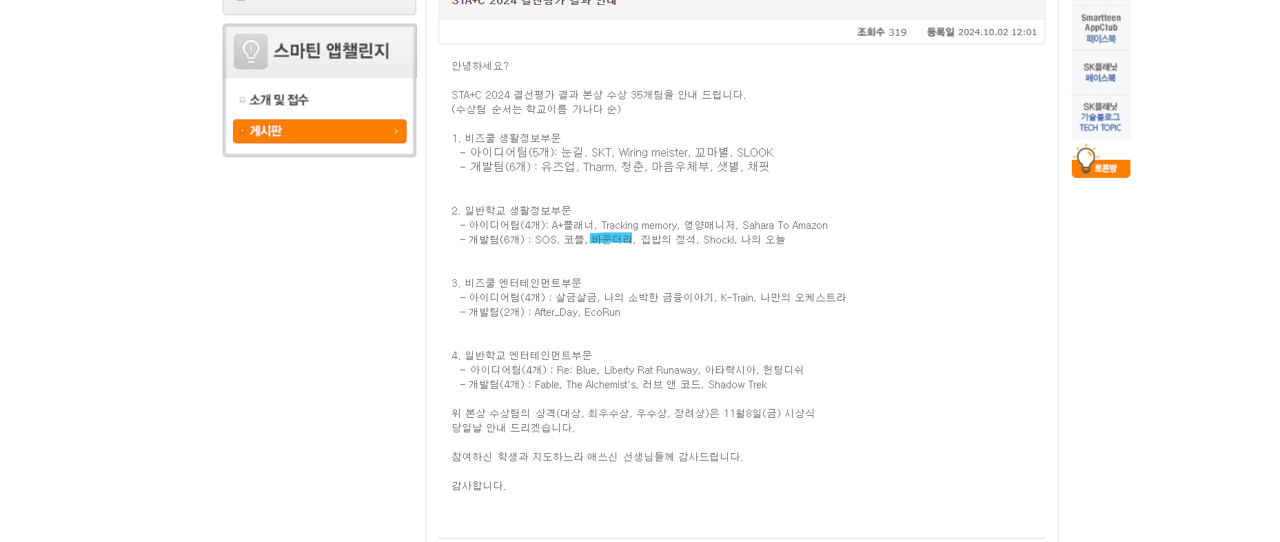 아직 대상/최우수상/우수상/장려상 중 어떤 상을 수상하게 될지는 모르지만 수상이 확정이 되었다.