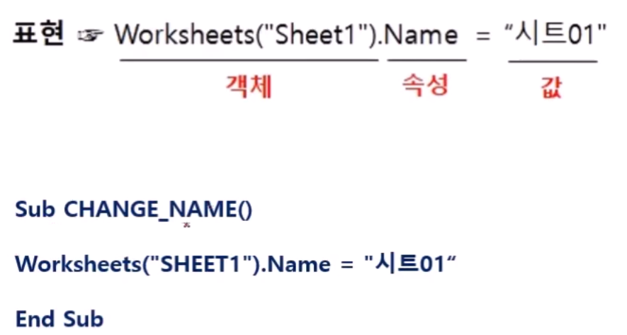 ▲ 엑셀 시트를 시트 01로 바꿀꺼야 라는 명령을 내릴 수 있지요.