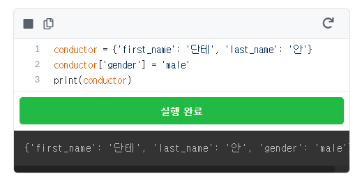 딕셔너리의 키(key) (또는 인덱스) -'first_name'과 'last_name'