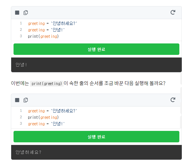 이후에는 해당 변수명으로 해당 변숫값을 참조할 수 있다