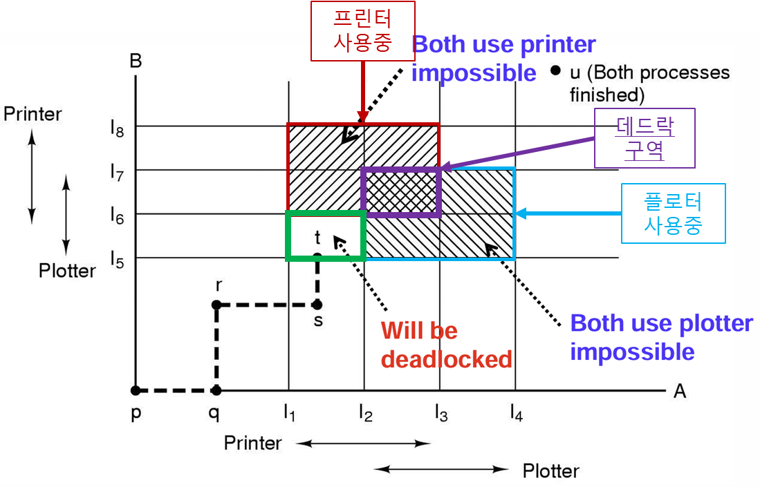 초록색 구역에 진입하는 순간 DeadLock 은 필연적으로 발생한다.