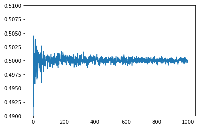 큰 수의 법칙을 파이썬을 통해 간단히 확인해보자.