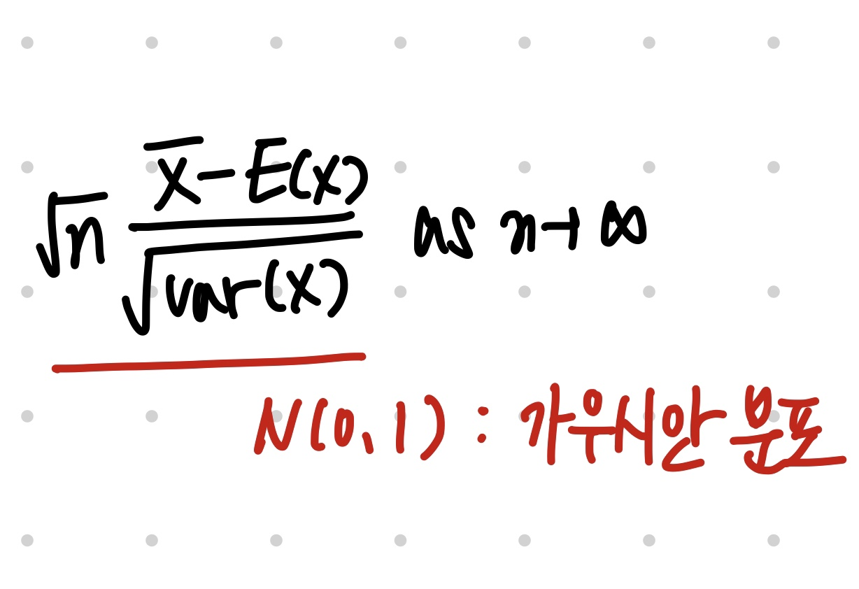 수학적으로 나타내자면 표본의 크기가 n, 표본의 평균을 X_var, 모평균을 E(x) 모평균의 분산을 var(x) 라 할때 다음과 같은식이 n이 커질때 N(0,1)인 가우시안 분포, 정규분포를 따른다 라고 할 수 있다. 아래 내용은 실습에 필요하기때문에 간단히 언급했다.