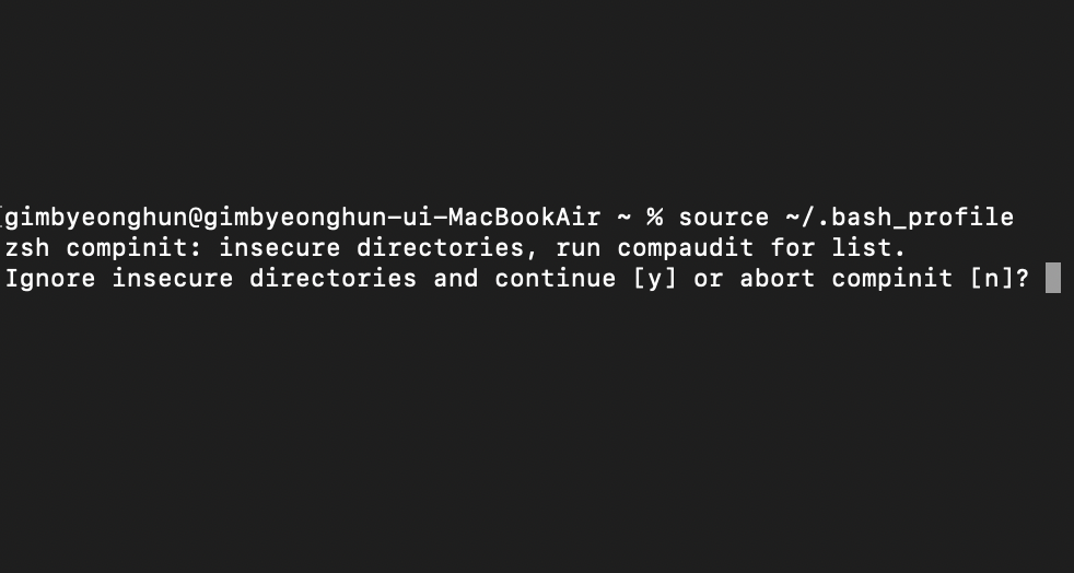 이런 글이 나와서 해석해보고 실수로 y를 ㅛ로 눌러서 무시하고 진행이 되었는데 , 신기하게 이후부터는 version도 나오고 vscode 터미널에서 이전에 진행했었던 query-selector와 calculaotor도 제출을 끝 마칠 수 있게 되었다. 크루님께서도 이 부분에 대해서는 확실히 모르시겠다며 구글링을 더 해보시겠다 그리고 이 오류에 대해서 y나 n을 함부로 누르지 않는게 좋을 것 같다고 하셨고 나는 오히려 새로운 터미널을 켤때마다 $ vi ~/.bash_profile >> :wq엔터 >> source ~/.bash_profile >> 아무 키 이렇게 환경변수로 들어갔다 나오는게 번거롭게 느껴지지 않고 재밌었다. 그래서 지금도 그렇게 하고 있긴하다. 페어님은 윈도우 환경으로 이 과정을 배우고 계셨는데 우분투에서 에러가 발생해서 나랑 함께 진행을 하지 못해서 아쉬웠지만 도중에 줌으로 무슨 상황을 겪고있는지 공유해주시고 나도 진행된 상황에 대해 말씀드리고 오류에 대한 개인적인 의견도 제시해드렸다.