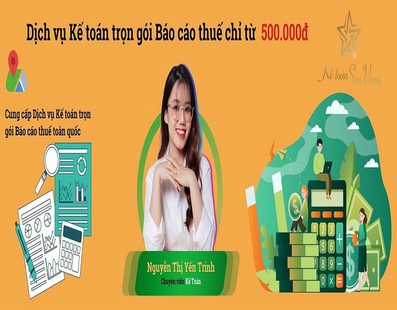 Kế toán Sao Vàng cung cấp dịch vụ kế toán – báo cáo thuế trọn gói từ 500.000 VNĐ/tháng.