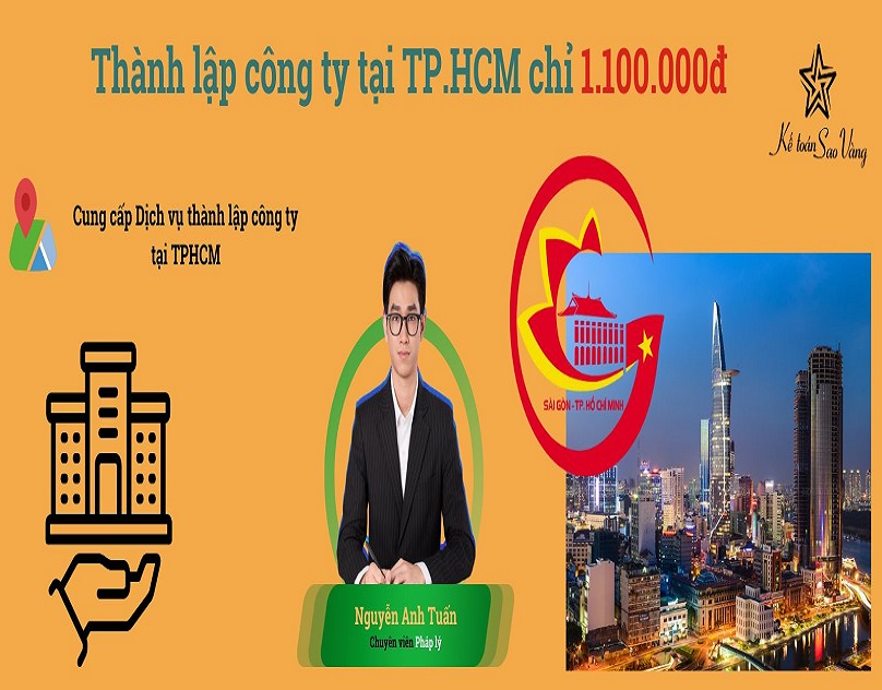 TP.HCM luôn giữ vị thế là trung tâm kinh tế hàng đầu Việt Nam, nơi hàng chục nghìn doanh nghiệp được thành lập mỗi năm. Tuy nhiên, quy trình thành lập doanh nghiệp tại đây không hề đơn giản nếu bạn chưa từng làm thủ tục pháp lý. Hiểu rõ điều đó, Sao Vàng triển khai dịch vụ thành lập công ty tại TP.HCM, hỗ trợ từ A đến Z, chỉ với 1.100.000đ, không phát sinh chi phí, không cần đi lại.