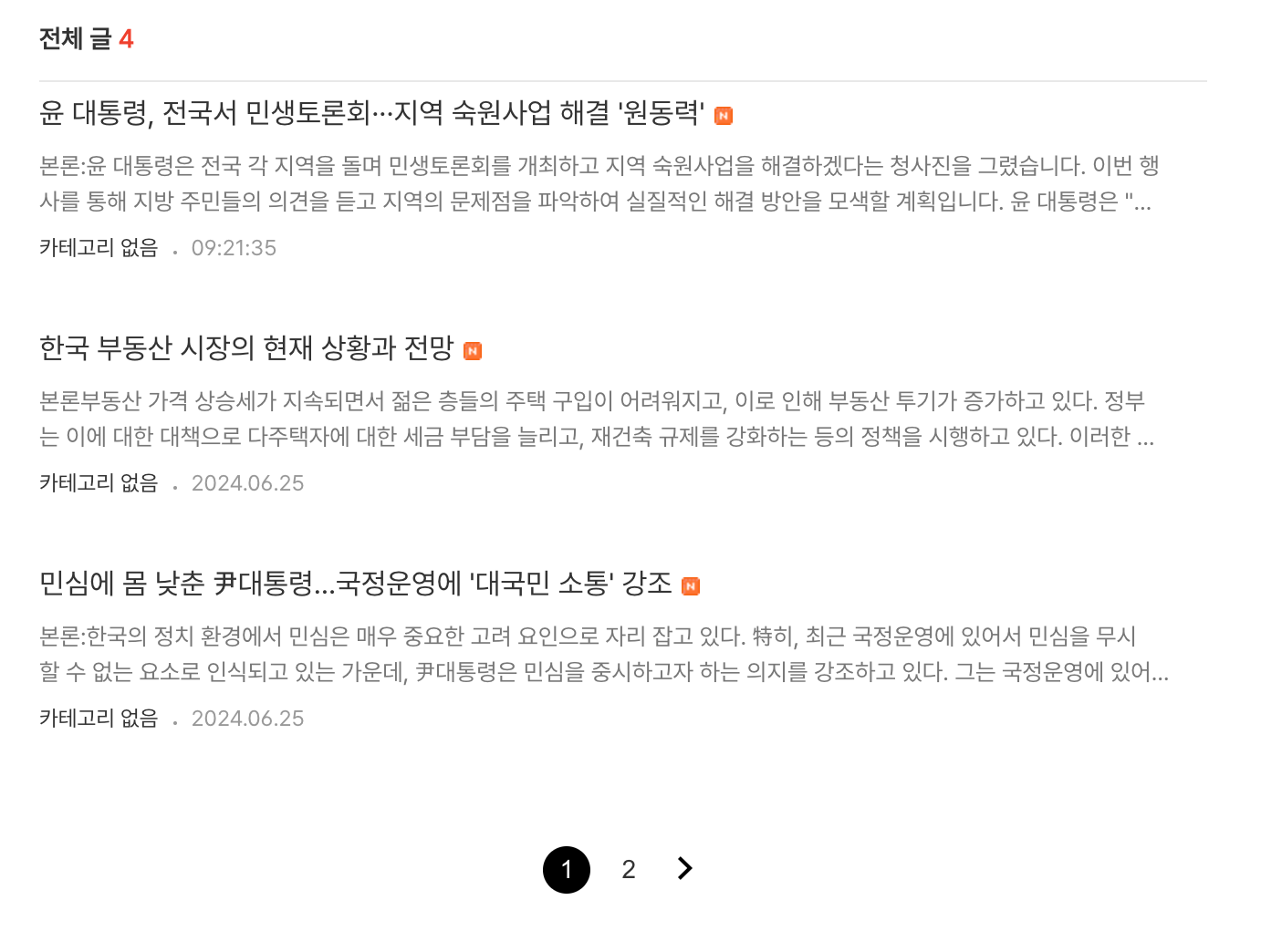 이건 제가 테스트한다고 대충 뉴스 제목 긁어와서 주제 입력만 해서 생성한 블로그입니다. 앞으로 이렇게 블로그 날먹치고 구글 애드센스로 돈 버는게 목적입니다. 아마 시간만 있다면 좀 더 다듬어서 크몽이나 이런데 납품도 할 생각입니다. 지켜봐주십쇼. 감사합니다.