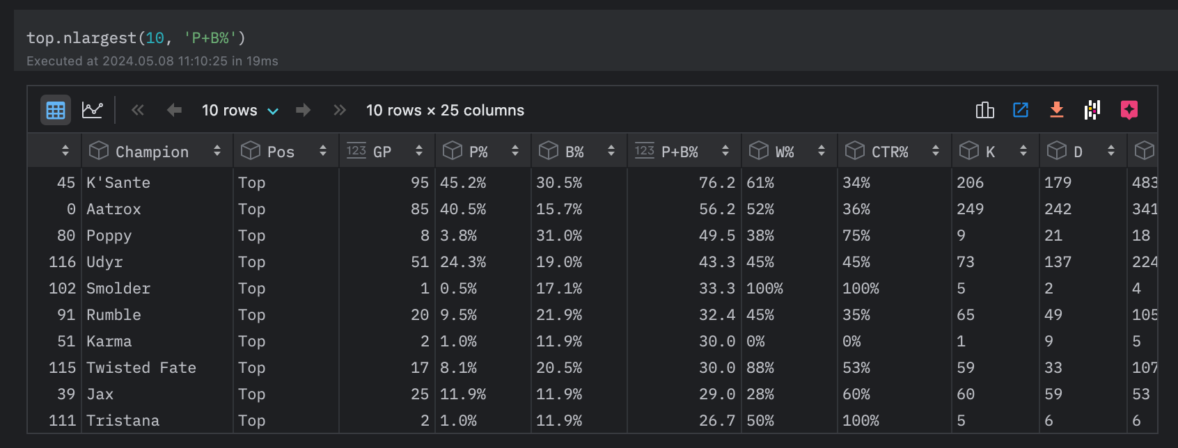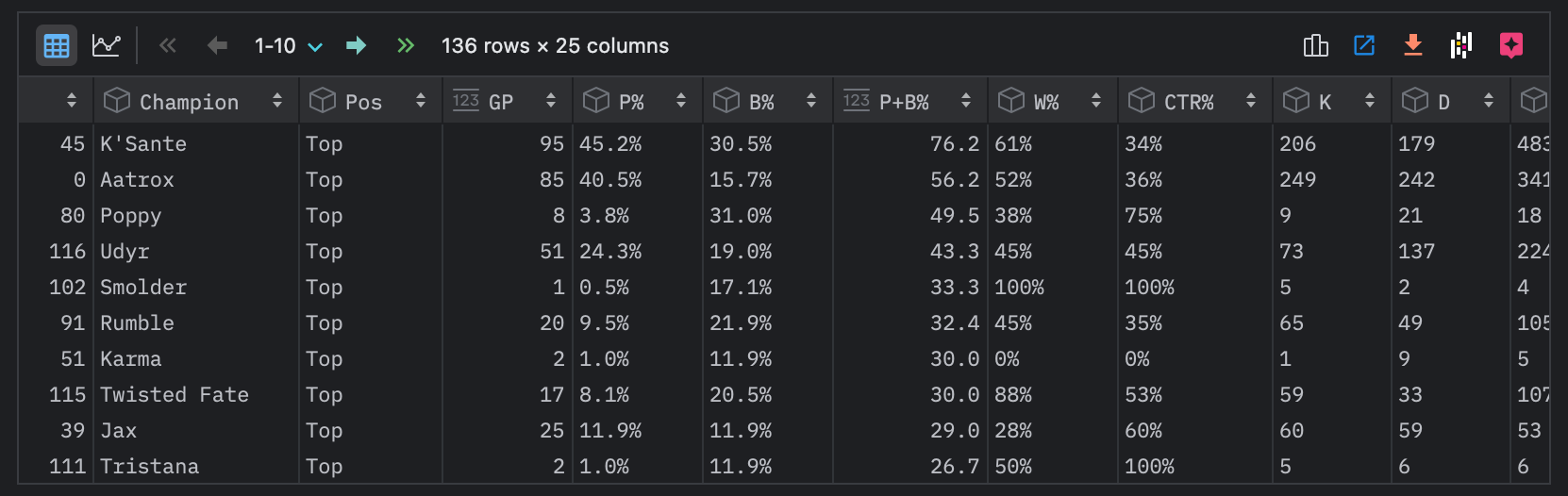 data = pd.read_csv('LCK 2024 Spring - Champion Stats - OraclesElixir.csv')