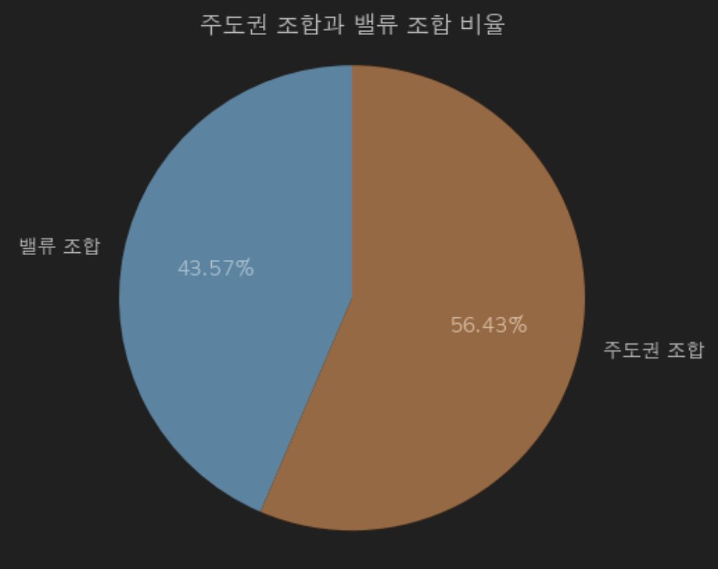 그래서 진짜 대회에서 밸류 조합을 많이 쓰는지, 실제로 주도권 조합에 비해 승률이 높은지 데이터 분석을 해보았다.