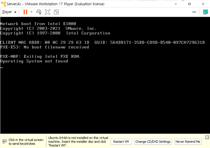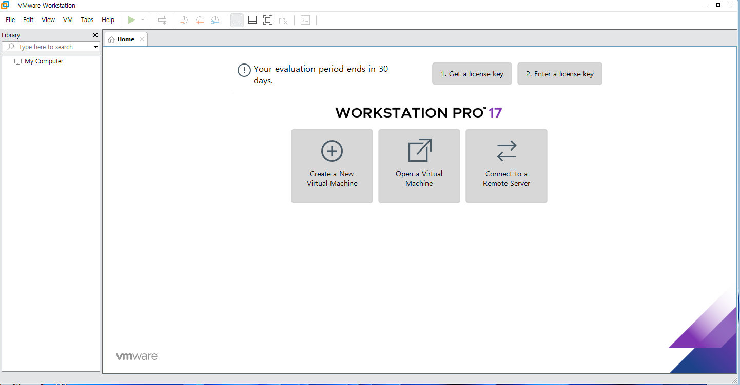 포커스 이동 : VM으로 들어갈 때 마우스 클릭, 다시 Host로 나올 때는 Ctrl + Alt 동시에 누르기