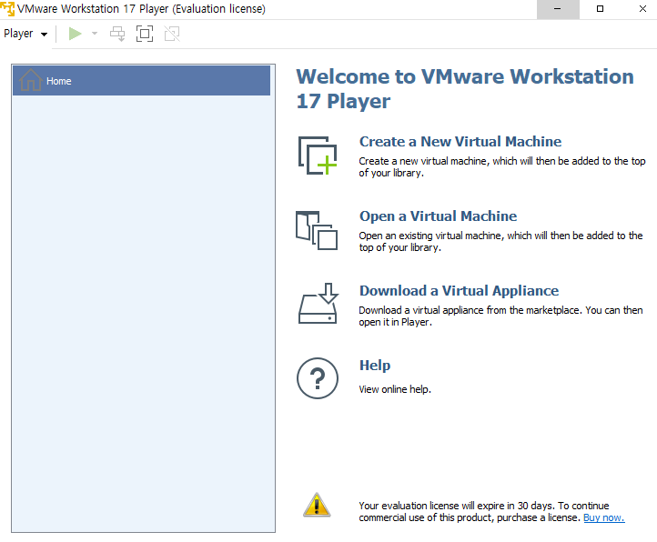 생성 : Player -> File -> New Virtual Machine