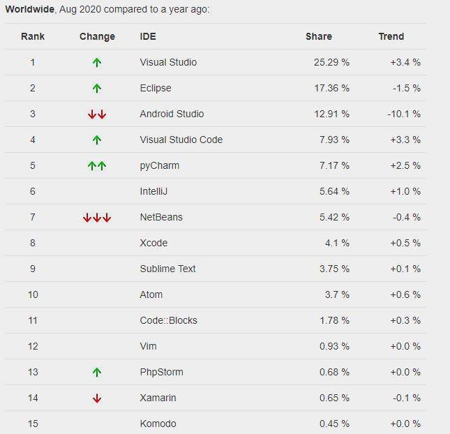 TIOBE index에서 2022 iDE 순위를 찾아봤지만, 2020.08결과밖에 나오지 않았다.