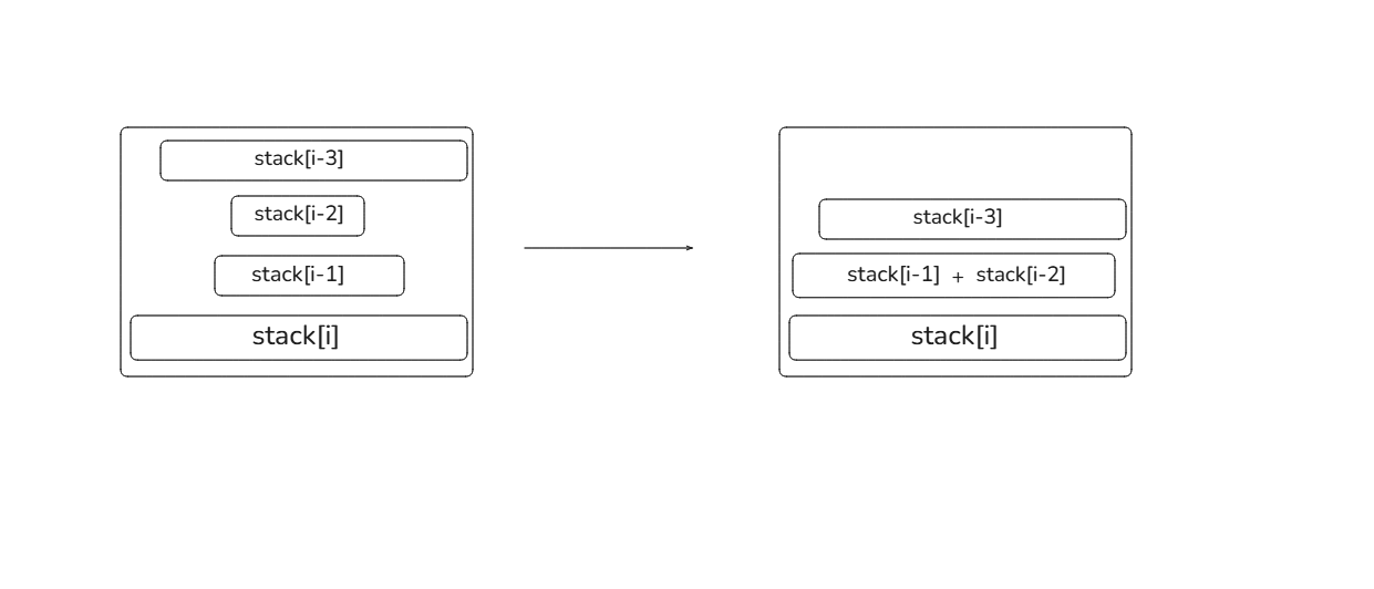 Stack[i] > stack[i-1] + stack[i-2]stack[i-1] > stack[i-2]이 조건을 만족하지 못하는 경우, 인접한 두 스택 덩어리와 비교해서 더 작은 덩어리와 병합합니다