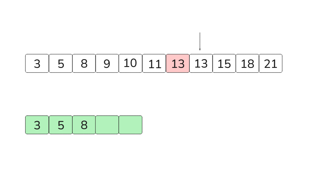 [3, 5, 8, 9, 10, 11, 13, 13, 15, 18, 21]