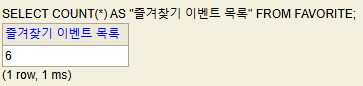 아래와 같이 6개의 FAVORITE 데이터를 생성했습니다.
