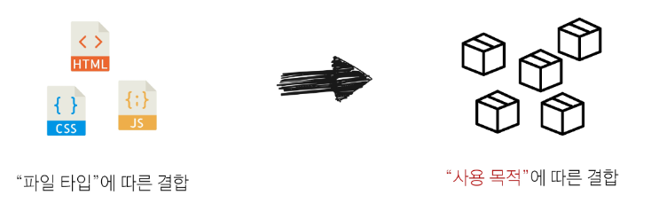 -> 프론트엔드 앱의 사용 목적이 점점 더 복잡해짐에 따라, 단순 파일 유형으로만 분리하게 될 경우 프로젝트의 목표를 달성 하는데 도움이 되지 않게 됨