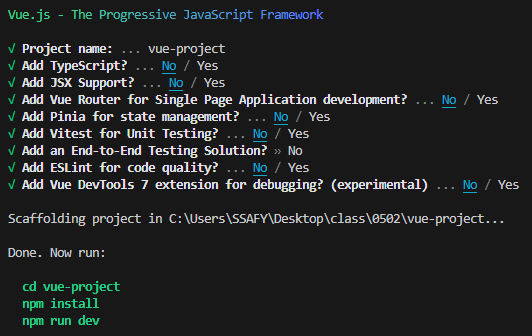 -> 언어 블록의 작성 순서는 상관 없으나 일반적으로 template -> script -> style 순서로 작성