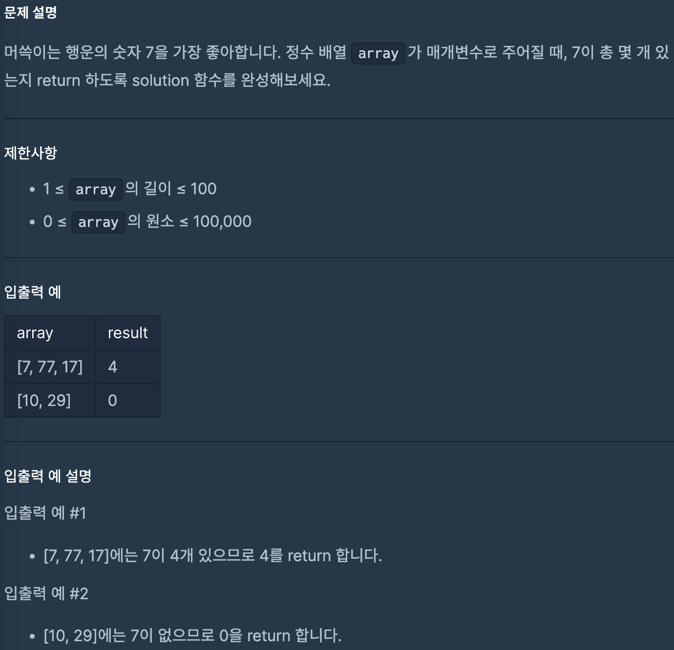 - 리스트에 저장된 값을 하나씩 비교하여 7이면 리턴할 갯수를 증가시킨다.