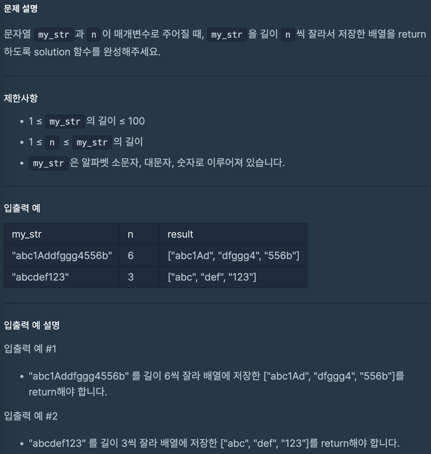 - 문자열을 길이 n인 부분 문자열로 자른다.